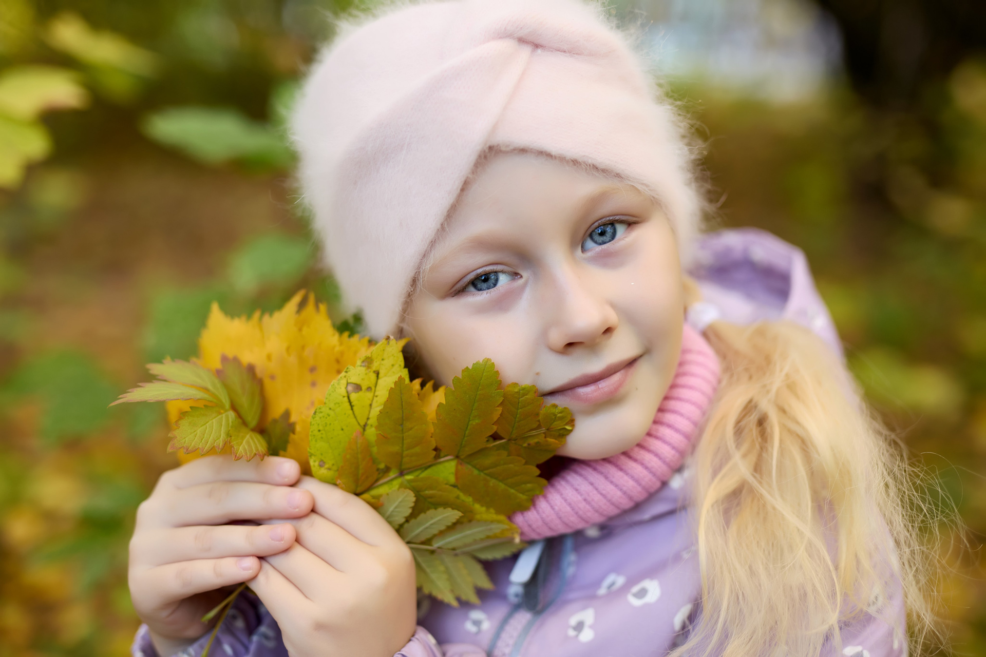 Крупный детский портрет в Иркутске, осенний образ
